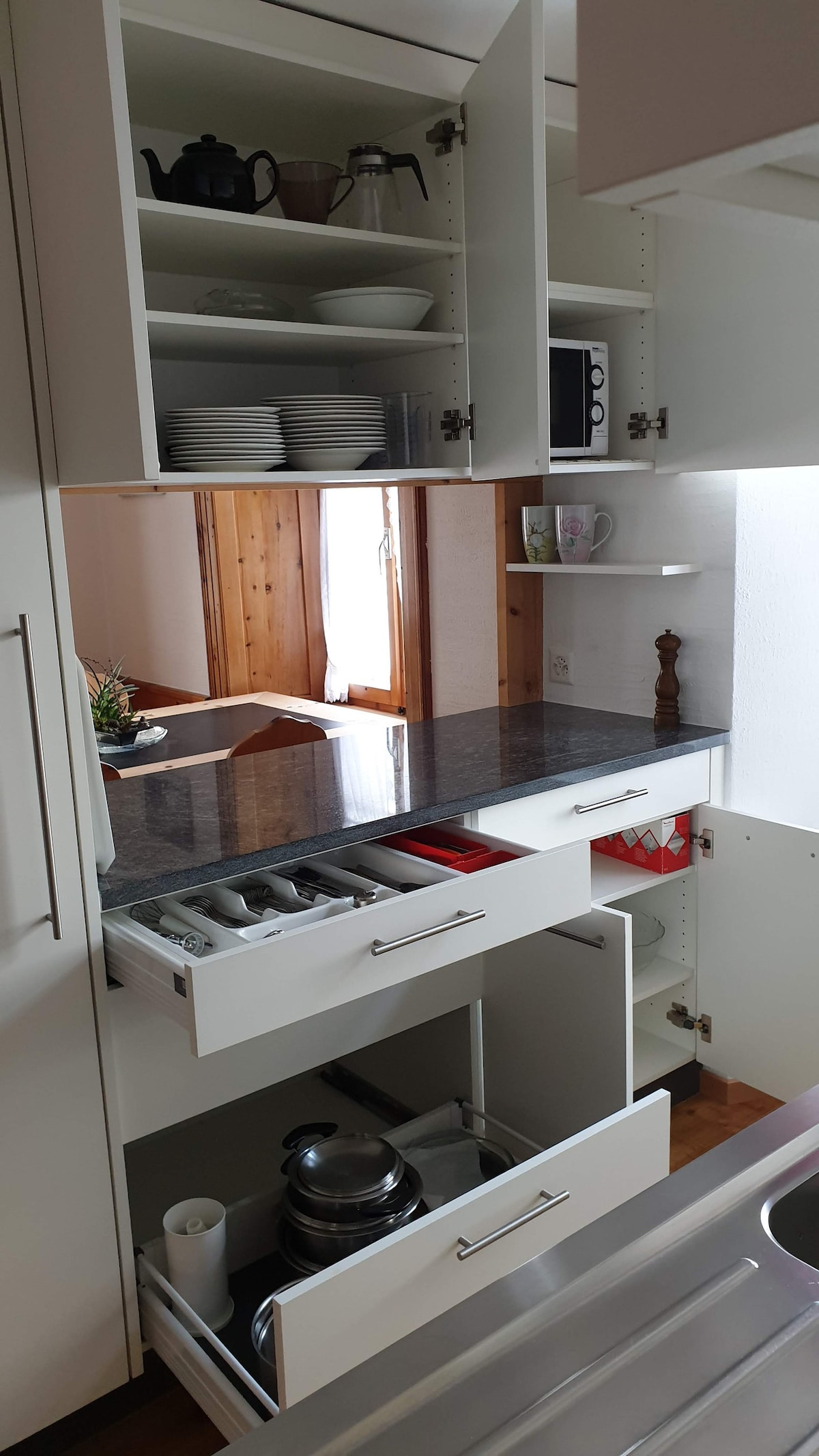 The renovated 3.5-room holiday apartment is located on the quiet outskirts of Churwalden, a charming village that serves as the gateway to the Arosa-Lenzerheide ski area. The village center, with shops, restaurants, a swimming pool, an ice rink, and cable cars, is a maximum of 10 minutes on foot. The return journey from the ski area to the house is possible with skis, or alternatively, the bus can be used. The Furnerschhus bus stop is located about 100 meters from the apartment.