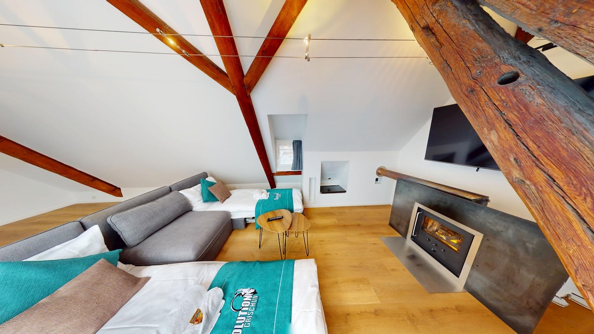 2层阁楼公寓,配备格里丘恩壁炉解决方案