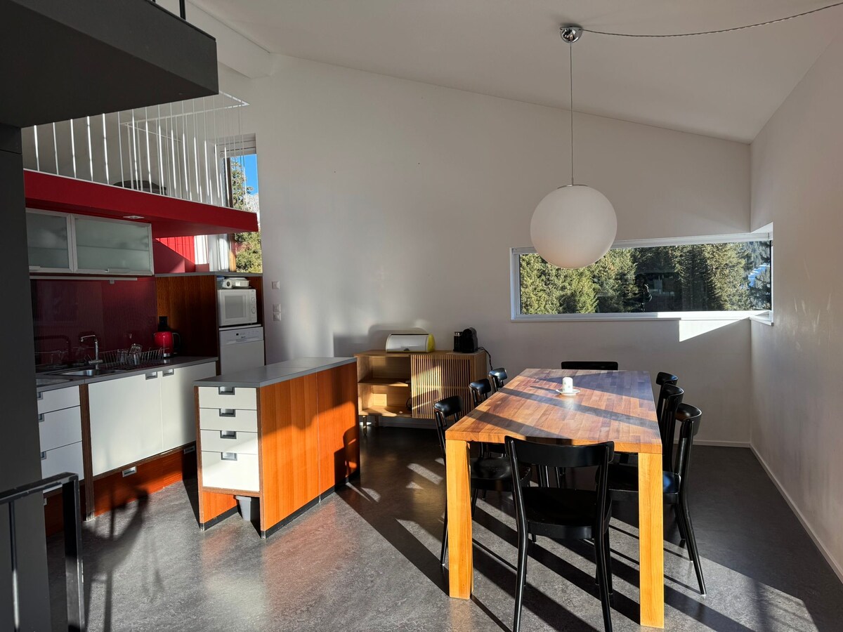 The renovated 3.5-room holiday apartment is located on the quiet outskirts of Churwalden, a charming village that serves as the gateway to the Arosa-Lenzerheide ski area. The village center, with shops, restaurants, a swimming pool, an ice rink, and cable cars, is a maximum of 10 minutes on foot. The return journey from the ski area to the house is possible with skis, or alternatively, the bus can be used. The Furnerschhus bus stop is located about 100 meters from the apartment.