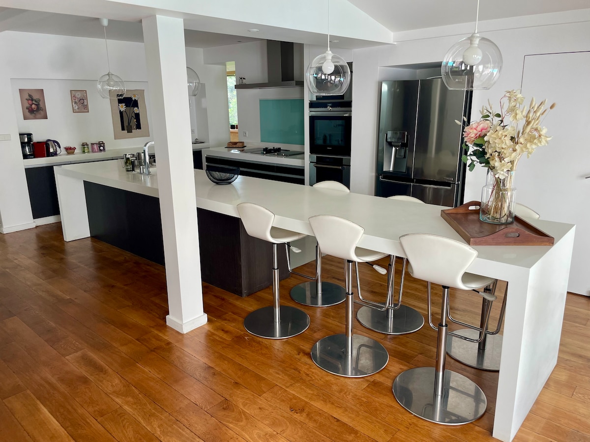 Détendez-vous dans cet élégant logement, confortable et décoré avec goût. 2 terrasses couvertes pour prendre le repas où l'apéritif dans son superbe jardin au bord de la piscine sans vis à vis. D'une superficie de 120 m2 avec une chambre de 21 m2 avec salle de bain attenante et wc. Un parking couvert et sécurisé pour votre véhicule. Idéalement placé à 700 m de la ligne de tram direction gare et centre ville. Regardez les avis...