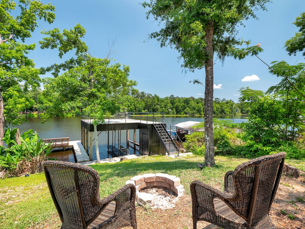 Kick back and relax in this calm, stylish space. Enjoy the beautiful lake view from the spacious living room, kitchen/ dining area. The kitchen is equipped with everything to make your favorite meal. Watch a good movie, while warming up to the cozy fireplace. Play a competitive game of pool, while enjoying that amazing view. Relax in the bed swing with a good book or sit on the dock and take in the amazing sunsets. You'll love the dock house; it gives you the feel of being on a houseboat.