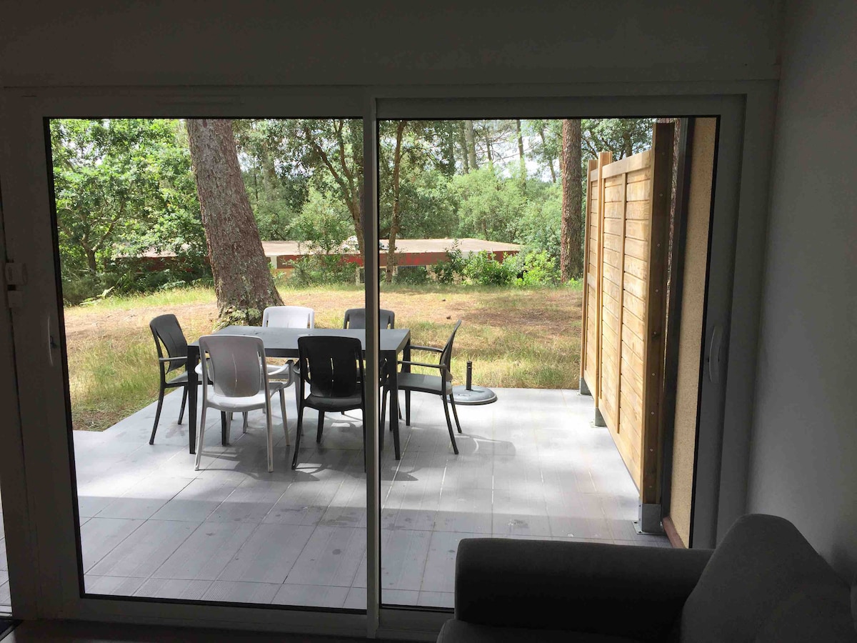 A 6 km de l'Océan Atlantique, au coeur d' une forêt de pins sublime et unique, vous trouverez un petit diamant de 70 hectares : Les Villages sous les Pins. Ce cottage mitoyen de 25m² a été entièrement rénové début 2018 dans un esprit cabane zen! Sans vis à vis et au calme, vous pourrez profiter d'une vue exceptionnelle sur la forêt de pins! Si vous souhaitez venir entre amis et en famille, nous disposons d'un second logement à proximité. N 'hesitez pas à nous demander les disponibilités