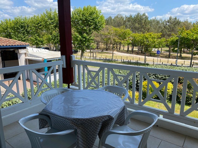 Au pied du Golf et des plages : appt 3 pièces duplex 2 à 6 pers. avec séjour, cuisine équipée, salle d'eau avec WC, chambre lit double, cabine 2 couchages, sdb avec WC. Actuellement en travaux : façade et peintures extérieures. Le plus : TV, Wifi, lave-vaisselle, piscine chauffée (selon saison) activités de loisirs (golf, surf, vélo). Linge de lit sur demande (sup. 40€). Terrasse vue pinède, parking gratuit. La résidence se situe au coeur de la pinède avec vue sur le golf et accès à la plage.