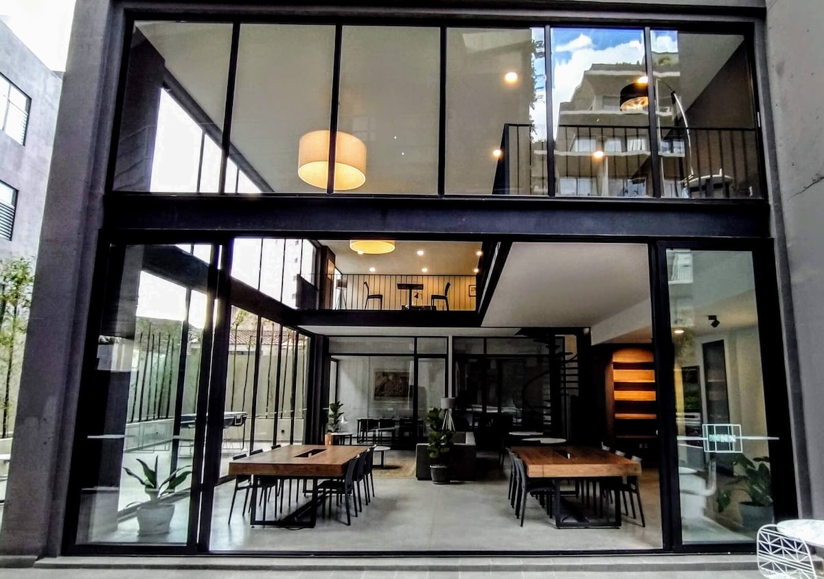 PREGUNTA POR NUESTRA OPCIÓN DE ESTACIONAMIENTO 🚗 🚗 🚗 Este amplio loft con mezzanine se encuentra en el corazón de la ciudad, dentro de una casa antigua con un diseño moderno y abierto, ofrece un ambiente acogedor, ideal para estancias largas o cortas. Equipado con cocina completa, baño privado, Wi-Fi y agua caliente. Su ubicación permite explorar a pie los principales atractivos turísticos de la ciudad. Perfecto para viajeros que buscan comodidad, estilo y proximidad a la cultura local.