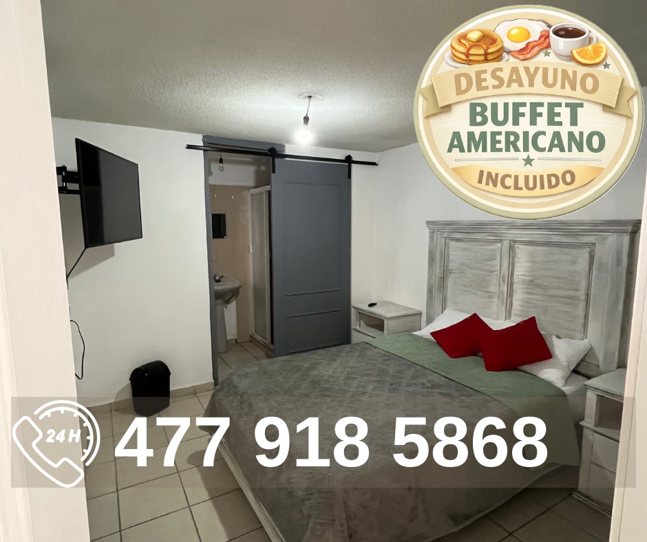 - Private room in downtown area of leon gto. - no need to climb stairs. - autonomous access. reception and luggage storage available 24/7 - Excellent wifi, spacious bathroom, queen size bed. - Parking in front or free parking on the street. - Located 400mts. from the pedestrian zone - quiet, safe and walking area. - amenities: working area and terrace.