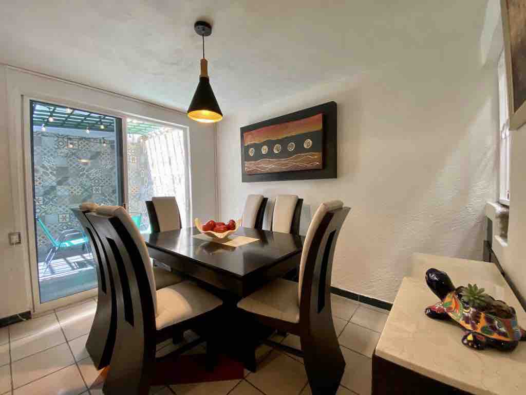 CASA ENTERA. 2 habitaciones Excelente ubicación a 10 min de los outlet, 25 min de puerto interior, vigilancias 24 hr. Cuenta con todos los servicios: wifi, calentador solar, 2 baños completos, tina con hidromasaje cocina equipada con barra-comedor, estufa, horno, refrigerador, horno eléctrico, microondas. Televisión con sistema Roku, para disfrutar una tarde de películas después de un largo día de compras o trabajo. Estacionamiento privado para 1 auto, enfrente de parque de la colonia