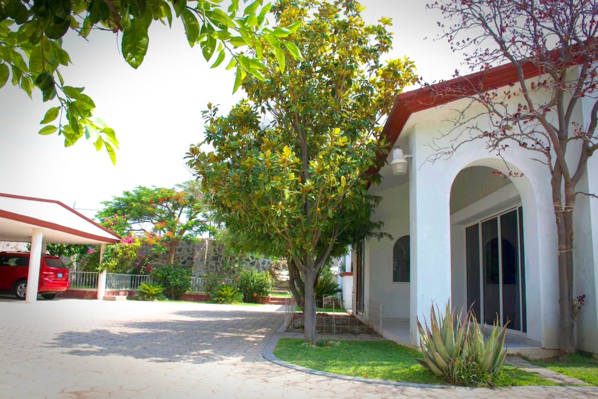 Amplia casa ajardinada, con todas las comodidades para una excelente estancia. La planta baja es de amenidades; cancha de futbol, asador, palapa, baños, regaderas, vestidores, alberca, vapor, temazcal, jardines y estacionamiento. En la planta alta encontraras el área de descanso con amplias habitaciones, baños, sala comedor y cocineta completamente equipadas, con vista a las áreas verdes que la rodean. Para fechas no disponibles esta otra opción: airbnb.com/h/casapinoscomanjilla Te esperamos