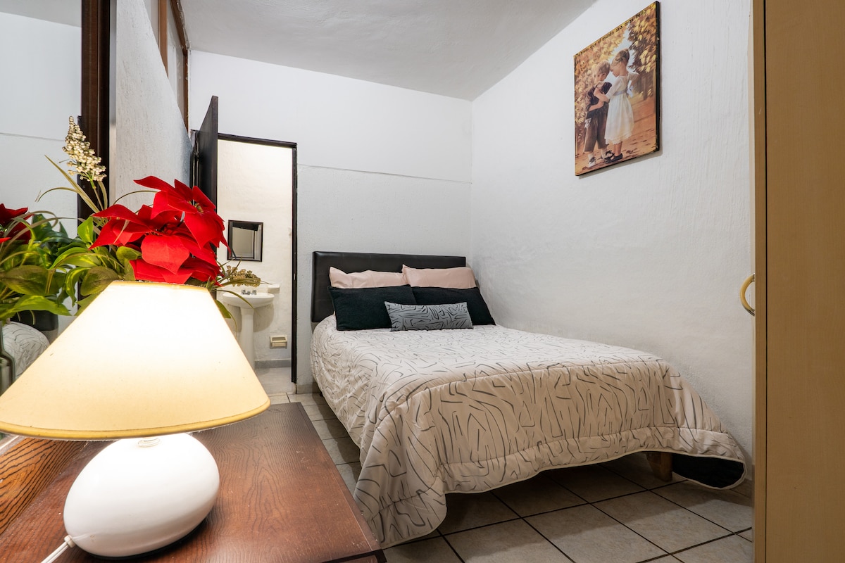 Nuestra HABITACION MAS PEQUEÑA 1 persona, ideal solo para dormir , baño privado con cama matrimonial. Terraza con vista al templo expiatorio de noche vista es muy bonita con acceso autónomo a media cuadra de la calle madero en donde encontrarás bares y restaurantes. A la vuelta del templo expiatorio ,pizza a media cuadra, oxxo, zona agradable Estacionamiento Gratuito a 2 cuadras y media del Airbnb lunes a sábado. DOMINGO SOLO SE ABRE A LAS 11:00am hora de check out para sacar tu vehículo