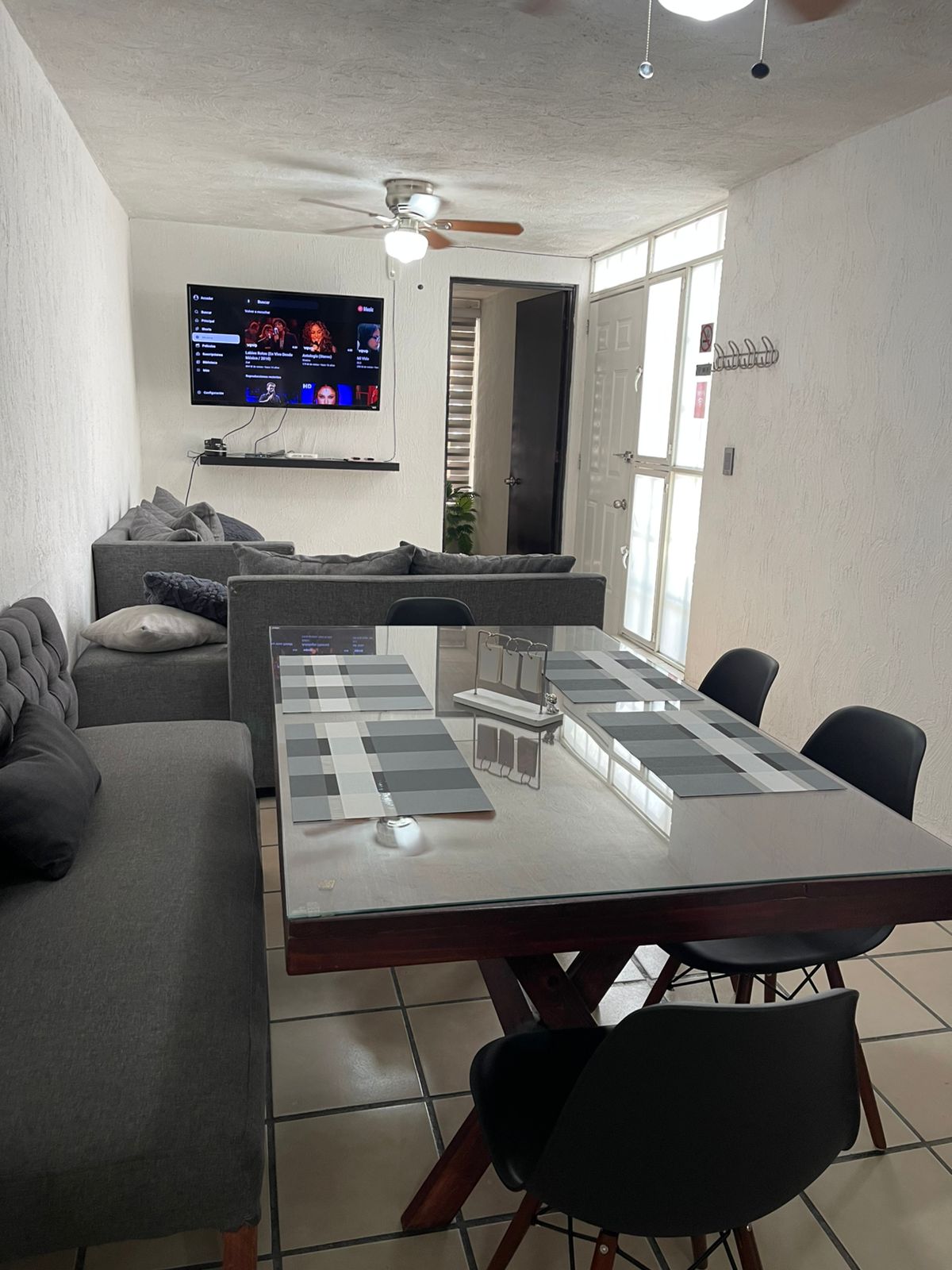 La casa se encuentra dentro de un fraccionamiento privado, seguro y tranquilo. Con muchas áreas verdes con juegos infantiles, canchas de futbol,basquetbol y pádel. A 5 min. De plaza comercial con restaurantes,tiendas,Walmart,outlet y gimnasios. A 20km del aeropuerto. La casa cuenta con 2 cama king size, 1 cama matrimonial y un Sofacama que se habilita solamente cuando la estancia es de 7 huéspedes. Puedes solicitar Early check-in o Late check-out con costos extra y sujeto de disponibilidad.