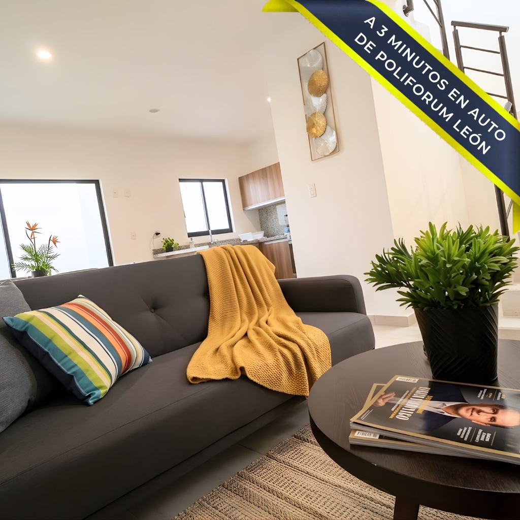 Disfruta tu estancia en León en esta cómoda casa ubicada dentro de un fraccionamiento privado, cuenta con 3 recámaras y capacidad para 8 personas, perfecta para viajes familiares, de amigos o de negocios. Espacios amplios y funcionales, equipados para que te sientas como en casa. 📍A solo 3 minutos del Poliforum, La Feria, Explora, Estadio León y el Forum Cultural. A 10 minutos del Centro Histórico y zona piel. cercana a plazas comerciales, restaurantes y varios servicios que puedas necesitar