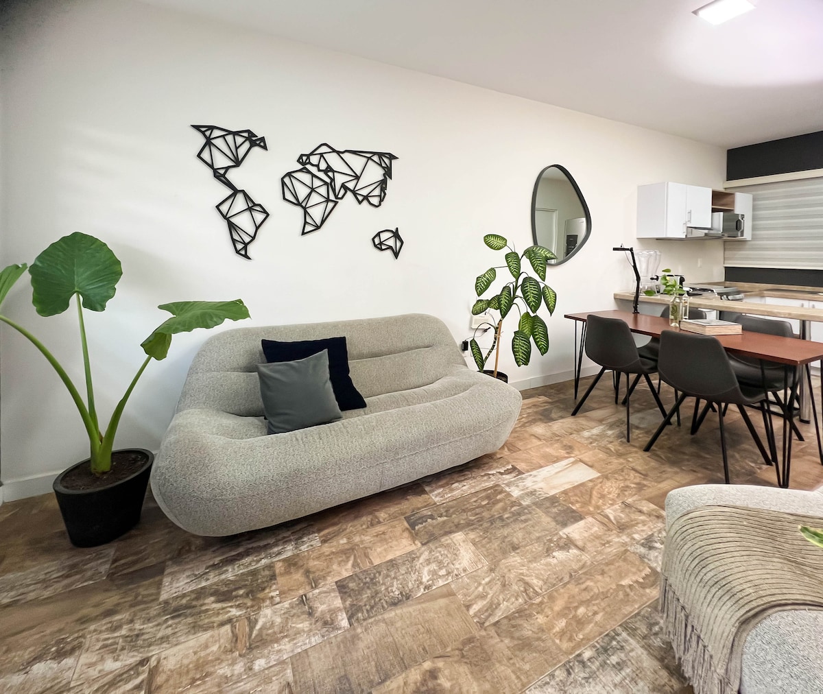 Tu escape urbano perfecto te espera en este amplio apartamento con vista al parque. Ubicado estratégicamente a sólo 5 min. a pie de la Calzada, estarás en el corazón de León con acceso inmediato a la Feria, el Poliforum, Explora y el Teatro Bicentenario. Descansa en una zona residencial que te ofrece paz mientras tienes cafés, restaurantes y todos los servicios a una cuadra. Cada detalle está pensado para tu comodidad, sólo necesitas reservar y disfrutar tu experiencia en León.