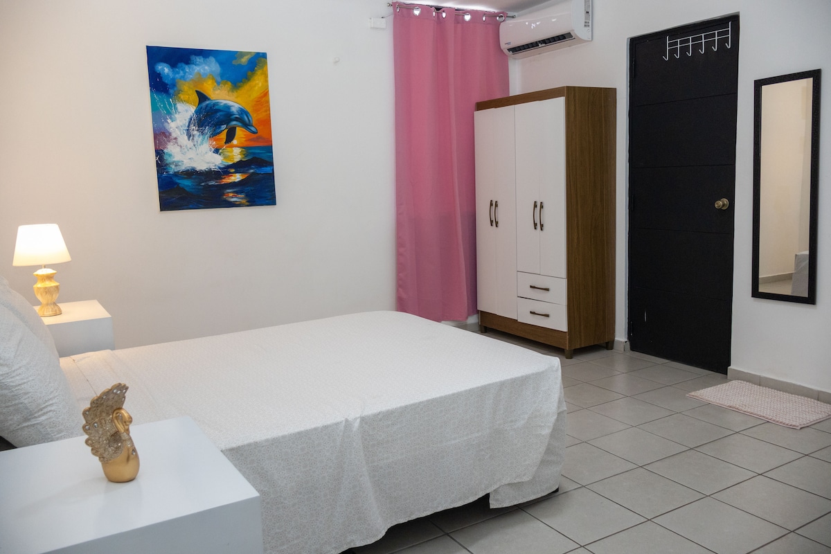 Habitación con cómoda cama matrimonial y un baño privado ecológico, que ofrece funcionalidad y sostenibilidad. Ideal para relajarse tras un día de aventuras. Acceso a cocina común completamente equipada para preparar tus comidas favoritas. Ubicada cerca de la playa, perfecta para disfrutar del mar, el sol o practicar surf. Su posición céntrica en el pueblo facilita explorar los alrededores y descubrir todo lo que la zona ofrece. ¡Un lugar acogedor para unas vacaciones inolvidables!