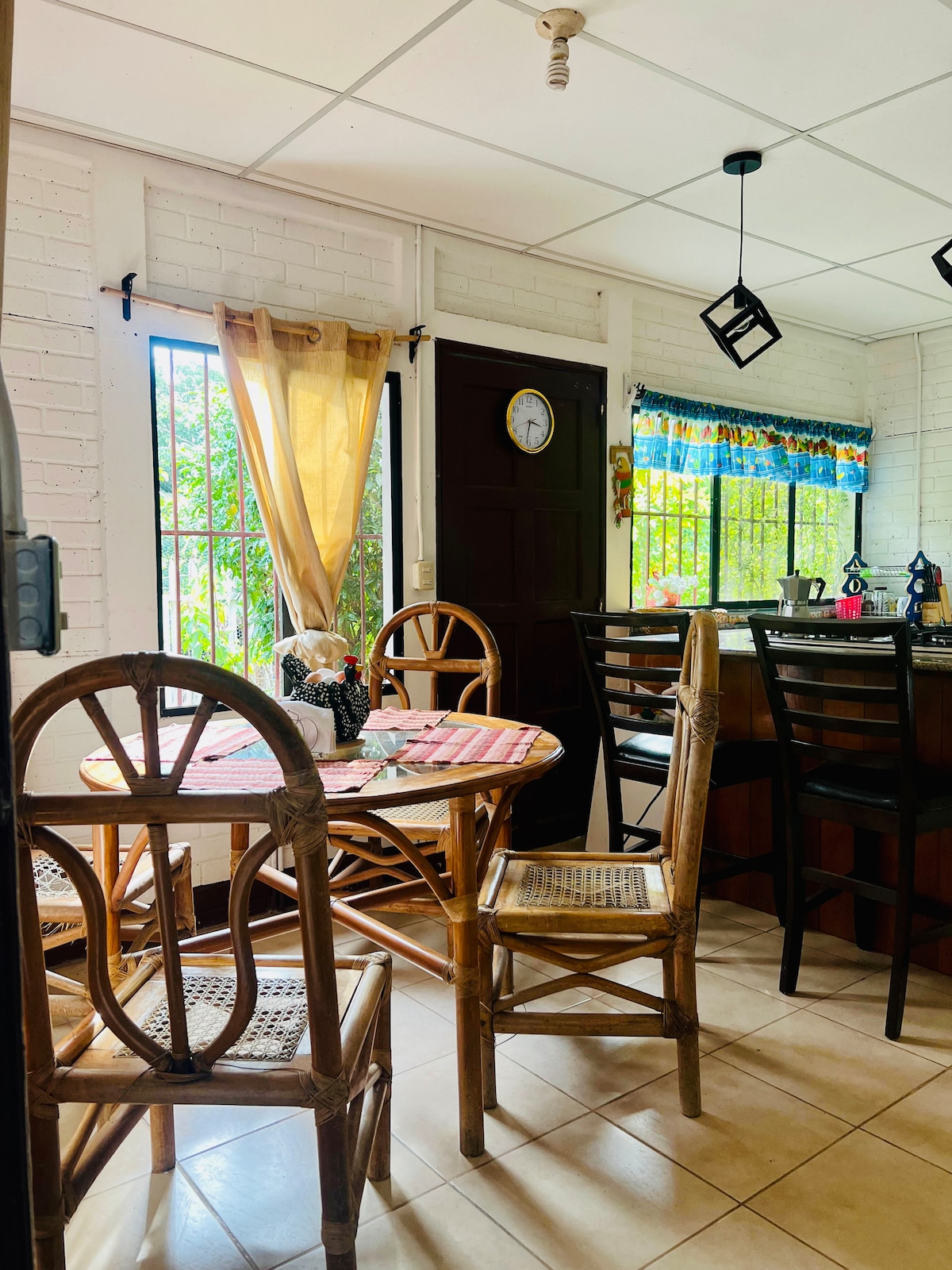 Two-bedroom home in La Pintora, San Jerónimo, León Includes 2 comfortable queen beds, full kitchen, living room, air conditioning, bathroom with hot water, Wi-Fi, TV with cable, washing machine, gated parking and 24/7 security. Neighborhood has several pulperias, verdulería, quesería, restaurantes, farmácia 5 minutes to the new hospital. 10 minutes from Leon center. 5 minute walk to bus terminal. 30 minutes to Poneloya and Las Peñitas Bilingual hosts (English/Spanish) ready to help.