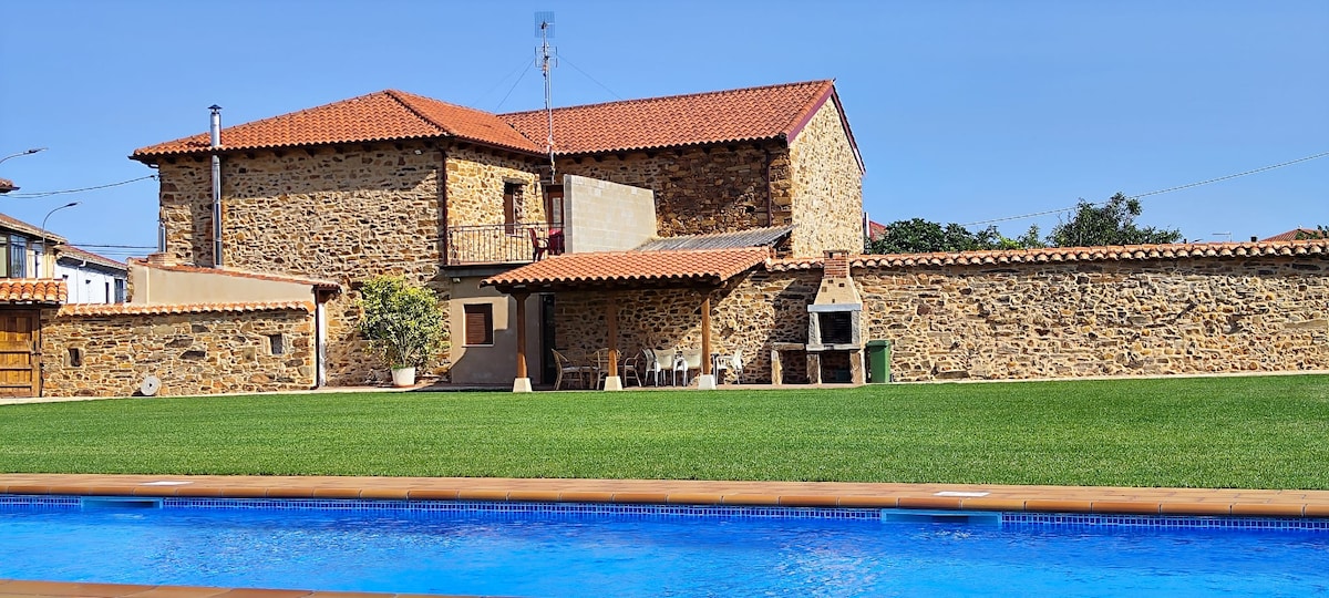Casa muy amplia, ideal familias, dispone de seis hab, salón con chimenea y gran balcón con galería. Un amplio patio para que jueguen los niños libremente, descansen los mayores en las hamacas o para comer en él, ya que dispone de barbacoa. Bonita piscina que puedes disfrutar casi todo el año. La casa se encuentra en un entorno rural acogedor y tranquilo, con una magnífica situación: en coche Astorga está a menos de 10 min, Castrillo de los Polvazares a 15 min, León a 40 min y las médulas a 1 h.