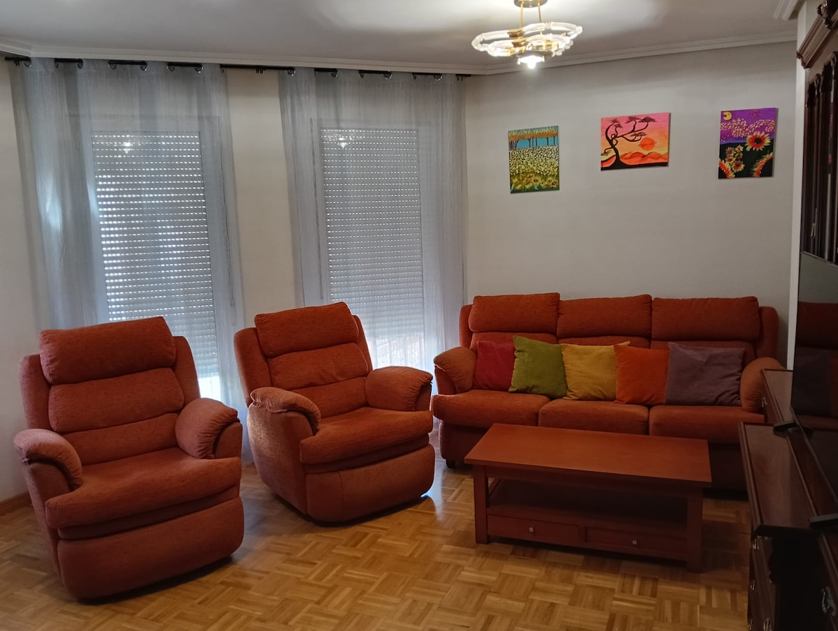 Disfruta de León desde este piso reformado y exterior, ubicado en pleno centro de la ciudad. Su cercanía a todo lo que necesitas harán de tu estancia una experiencia inmejorable. A tan solo 5 minutos a pie del casco antiguo, de la Catedral y San Isidoro y 7 minutos de las estaciones de tren y autobús. La zona cuenta con todo tipo de servicios: supermercados, restaurantes y tiendas. Perfecto para familias, amigos o pelegrinos que buscan comodidad y ubicación. WIFI rápido ideal para trabajo