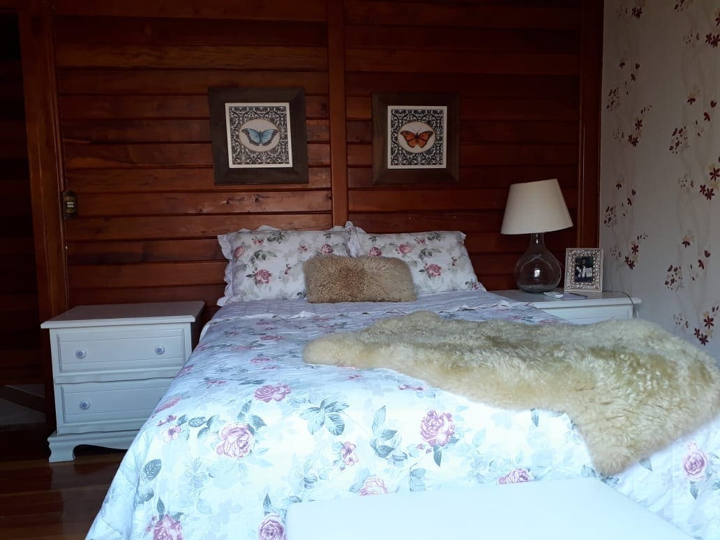 A casa possui um quarto principal, equipado com 2 camas de casal e ar-condicionado, e um quarto menor que oferece uma cama de solteiro e um colchonete extra (sem ar-condicionado). Dispõe de um banheiro social e outro externo, ambos com chuveiro aquecido. Sala de jantar, estar e uma cozinha totalmente equipada com utensílios domésticos. Na área externa, há uma área com churrasqueira. Uma vaga de garagem coberta, sujeita à disponibilidade. Localizada a apenas 10 minutos de carro do centro da cidad