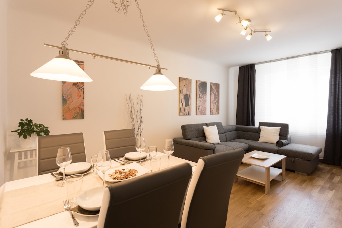 My perfectly located (just 10 min. walking distance to the 1st district) 72 m2 (= 720 sq ft) modern apartment is very sunny with huge terrace doors and beautifully furnished. Everything is easily accessible by public transportation; the U1 (underground) is just 2 min. away. You have full access to the entire apartm, incl. dishwasher, laundry machine, WiFi and cooking utensils Entrance hall, open kitchen (NESPRESSO machine), dining/living room, bedroom, bathroom, separate toilet + free parking