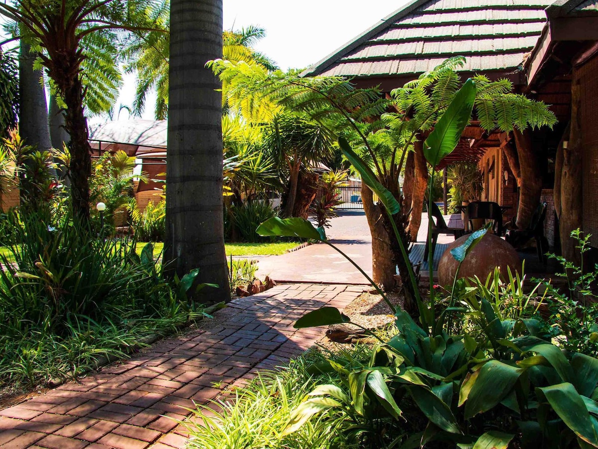 Old world charm meets Style & Luxury at this 19 bedroom guesthouse in a quiet suburb of down town Lephalale. Enjoy our crystal clear swimming pool and have a braai at our boma on a hot summers evening. Safe secure parking on our premises gives peace of mind. Free wi-fi and air-conditioning. Sit down for a quiet breakfast or dinner on our premises or enjoy our restaurant a mere 800 metres away.