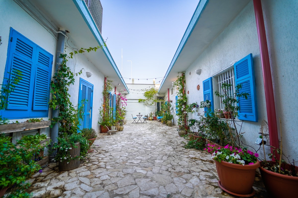 You'll feel in heaven on the sofas of the terrace in the historic center. Blue everywhere: the sky and the sea blend together. The silence broken only by the seagulls' voices. Sunset aperitifs and nights full of stars will be unforgettable. The ideal home for those who are searching for quiet and peace: cozy, clean and familiar, with stylish and exclusive design. From the typical courtyard of the historic center, two flights of stairs will take you to the attic. Recently renovated and furnished with care for the smallest details, it' s ready to welcome you for a dream holiday. It has a lounge, well-equipped kitchen with dishwasher, 1 bedroom with fireplace, 1 bedroom with TV and desk, 1 bathroom and 2 gorgeous terraces for exclusive use. PLUS 1: EXTREMELY RARE TERRACE AT THE SAME LEVEL OF THE APARTMENT: equipped with outdoor kitchen, dining table in the shade of bamboo pergola and large outdoor shower made of Salento’ s typical tiles. So you can, through the large window of the living room, cook, have lunch, relax or have a refreshing shower directly on the terrace. PLUS 2: EXCLUSIVE UPPER TERRACE: a staircase of a few steps will lead you to the large terrace overlooking the sea of the beach of Purità: equipped with built-in sofas, spacious bamboo pergola to shelter from the sun, colored deckchairs and a large table to have dinner under the stars • The house and the terraces are your complete and exclusive arrangement! • The apartment is suitable for adults friends and families with children. • We have powerful AC WI-FI, free for our guests. • Dishwasher and washing machine are available A trusted person will give you the keys on your arrival. For any need you can contact us by phone or mail or whats App. insta gram @mactoia This peaceful home sits in the historic seaside town of Gallipoli. Walk to supermarkets, pastry shops, great restaurants, trendy clubs, and the marina and beautiful beach. CHILDREN: In the presence of children, the large upper terrace requires the presence and supervision of an adult. STAIR: To reach the apartment there are two flights of stairs to do. Also from the first terrace there are a dozen steps to go up to the upper terrace. PARKING: It is not allowed to enter the old town of Gallipoli by car: you can park your car in the parking lot of the marina and continue on foot: the house is about 200 meters away.