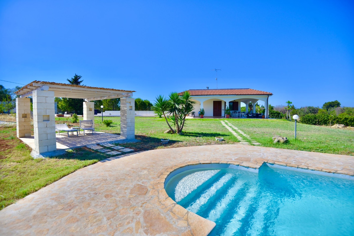 Villa ampia e fresca,di recente ristrutturazione,ideale per chi intende godersi le vacanze in un'oasi verde alle porte di Cisternino e Ostuni. La Villa prevede 6locali: 3camere da letto,2bagni,soggiorno-cucina. All'esterno troverete:piscina ad acqua salata con idromassaggio,gazebo,docce esterne,barbecue,sdraio, salottino esterno,parcheggio privato.Situata strategicamente in prossimità di Ostuni,Cisternino,Martina,Locorotondo,Alberobello,Spiagge di Fasano,di Ostuni e di Monopoli. Disponibili bici