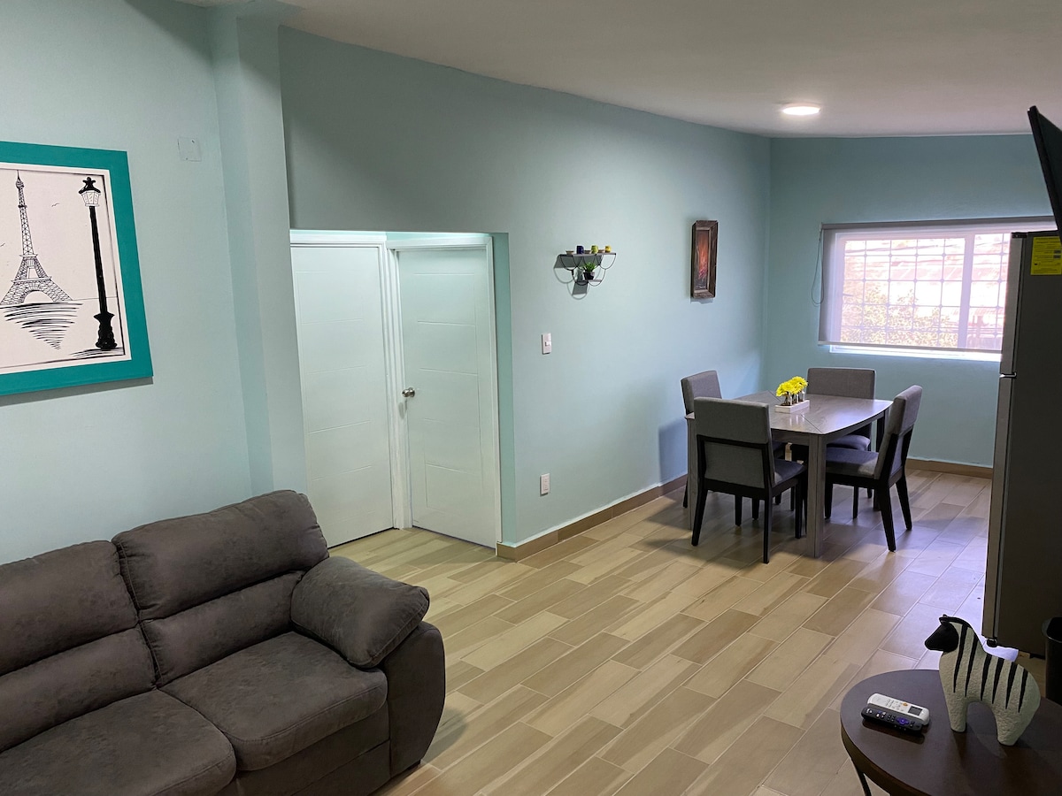 Tu familia estará cerca de todo, centros comerciales, zona industrial,súper etc. tu hospedaje en este alojamiento será tranquilo, y súper seguro. Si necesitas que vaya por ti a el aeropuerto también tengo el servicio por $200 pesos en una camioneta para 4 personas. Solo del aeropuerto a la casa o viceversa. Horario disponible de 4 a 9 pm.