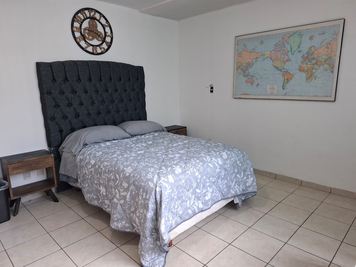Relájate en este loft con terraza privada, estilo rústico y pantalla gigante con Youtube Premium y Netflix Premium. Ideal para parejas, viajeros o workation. Cama cómoda, escritorio, baño completo + medio baño vintage, enfriador de vinos y pista arbolada para correr. Limpieza semanal y estacionamiento privado. Nota: La casa tiene dos lofts independientes que comparten entrada principal, cocina y comedor (opcionales). Cada loft tiene acceso privado con llave.