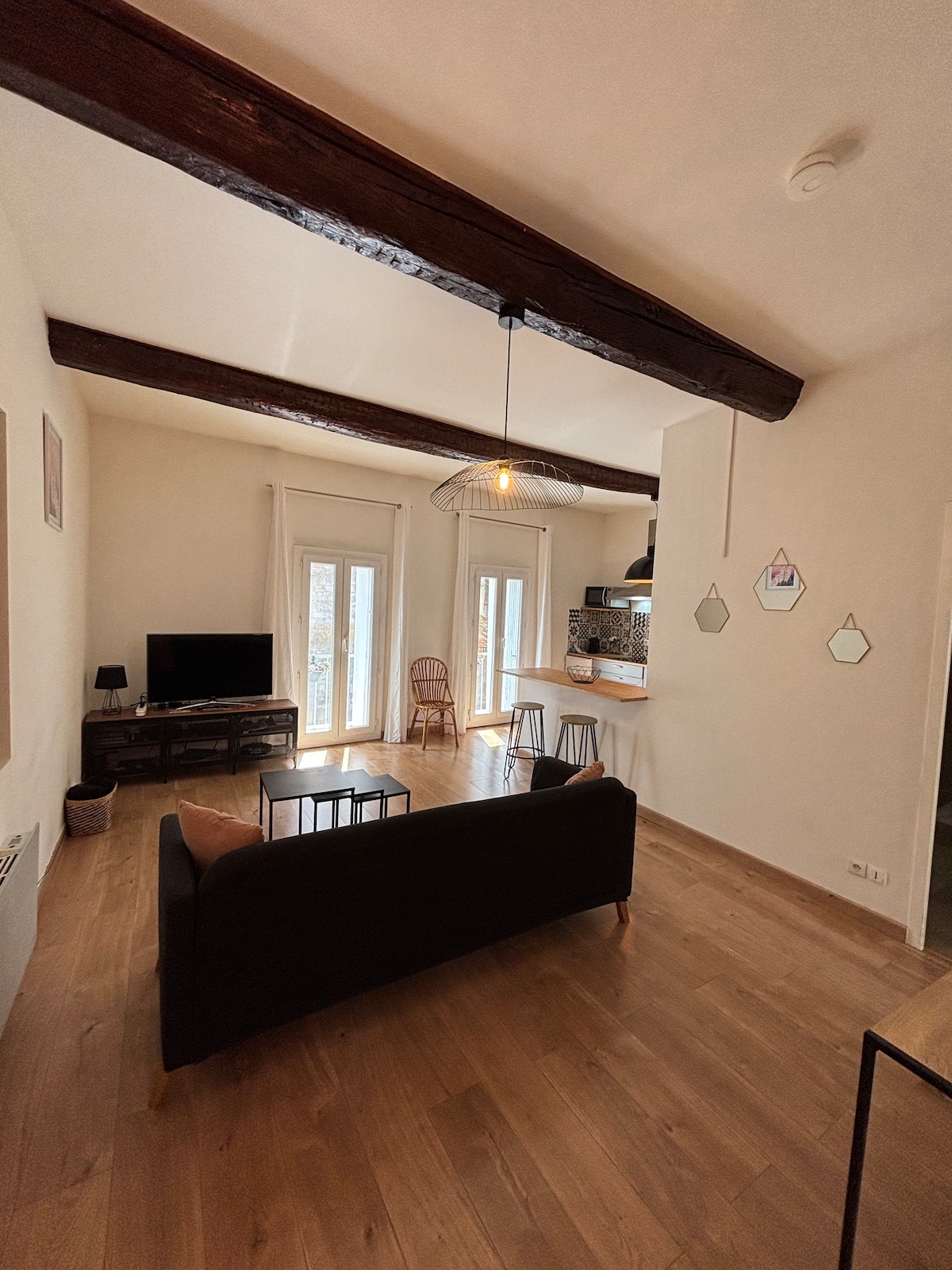 Bienvenue dans ce CHARMANT appartement au CŒUR DE BÉZIERS, à deux pas des HALLES, des restaurants et des lieux incontournables de la ville. Que ce soit pour un séjour en amoureux, en famille ou entre amis, vous profiterez d’un cadre SPACIEUX & CONFORTABLE. CENTRAL, LUMINEUX et CALME le logement vous séduira par son agencement soigné et sa décoration moderne. Tout a été pensé pour votre confort : WI-FI, CLIMATISATION, TERRASSE AGRÉABLE… Il ne vous reste plus qu’à poser vos valises !