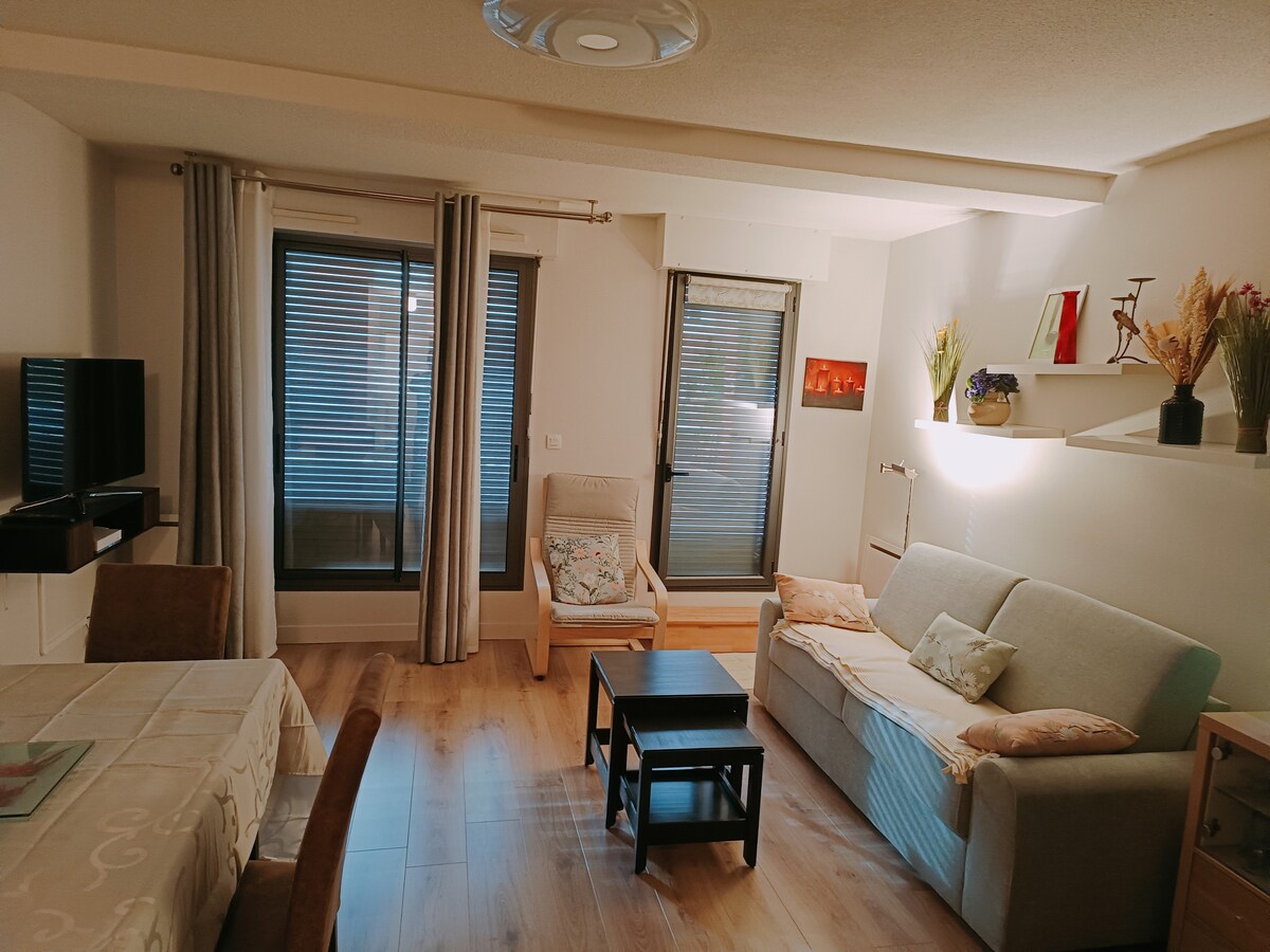 T2 de 45m2, lumineux et calme sans vis-à-vis au 1er étage, dans une résidence sécurisée, situé au centre ville de Toulouse. Ce charmant appartement est composé d’un séjour avec cuisine équipée, ouverte sur le salon ainsi qu’une belle chambre. L'appartement a été refait, de notre expérience de voyageur mais aussi d'hôte AirBnB, nous savons ce qui rendra votre séjour confortable, agréable. Pour quelques jours, ou pour un séjour plus long, vous serez comme à la maison ! Bienvenue chez vous !