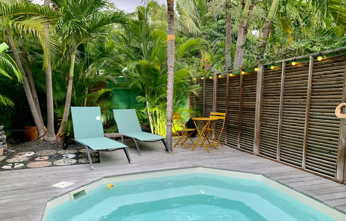 LE MANIOC Située en plein Cœur de notre iles si accueillante, dans une petite résidence locale, non loin de tout commerce ( boulangerie, épicerie, pharmacie, docteur etc.….). Nous vous proposons une chambre climatisé avec rangement, un salon avec un canapé convertible pour se détendre après une belle journée d'exploration. Une cuisine équipée ouverte, une salle de bain avec w.-c. et une terrasse équipée d'une bar extérieur.