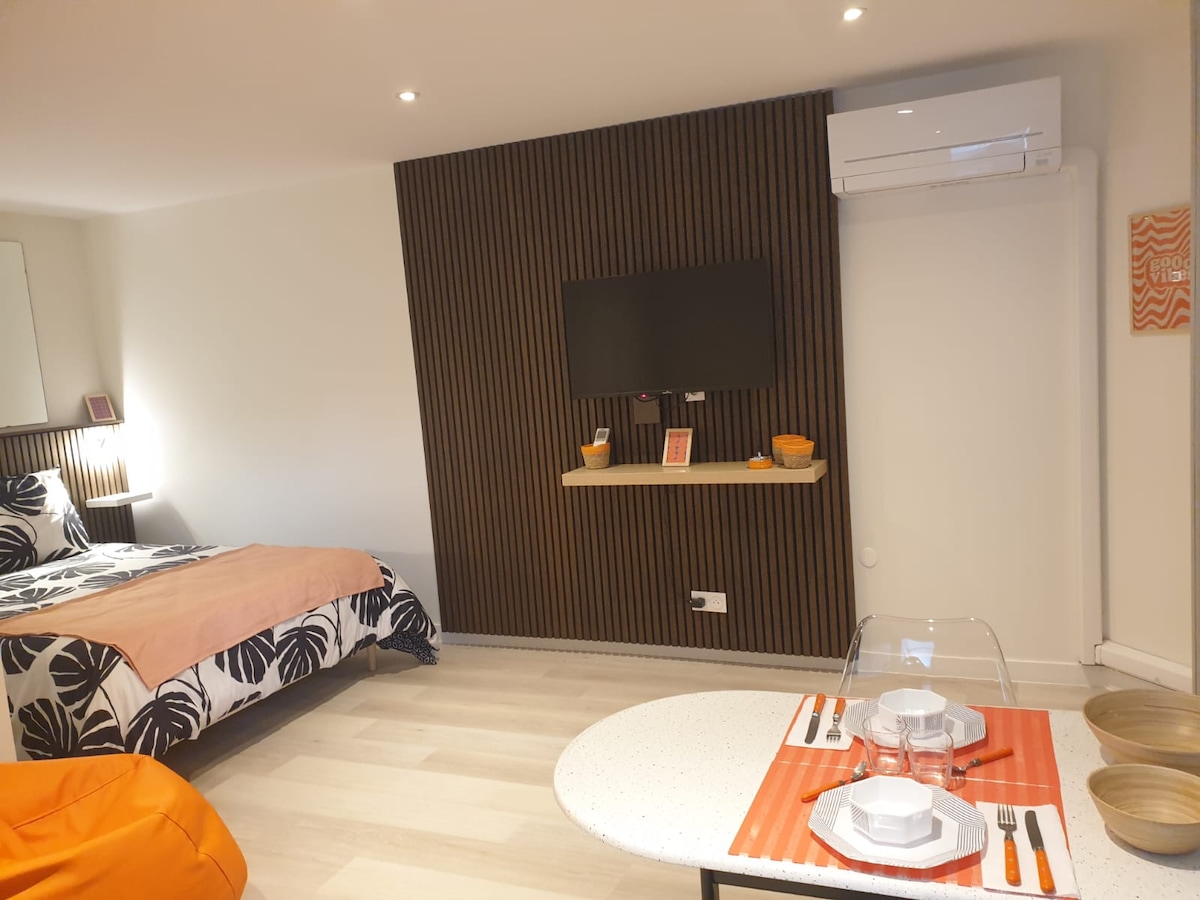 Chaleureux studio de 40 m². Accés direct via sa petite terrasse depuis le parking a proximité. Un lieu de vie à la fois nature et moderne où l'ambiance boisée et colorée alterne avec un style plus cosy. Il se veut simple, fonctionnel et modulable afin que chacun y trouve son compte en fonction des besoins liés à son séjour. Appartement calme et sécurisant. Il est mitoyen du mien et je suis souvent sur place. Je pourrai me rendre disponible en cas de besoin.