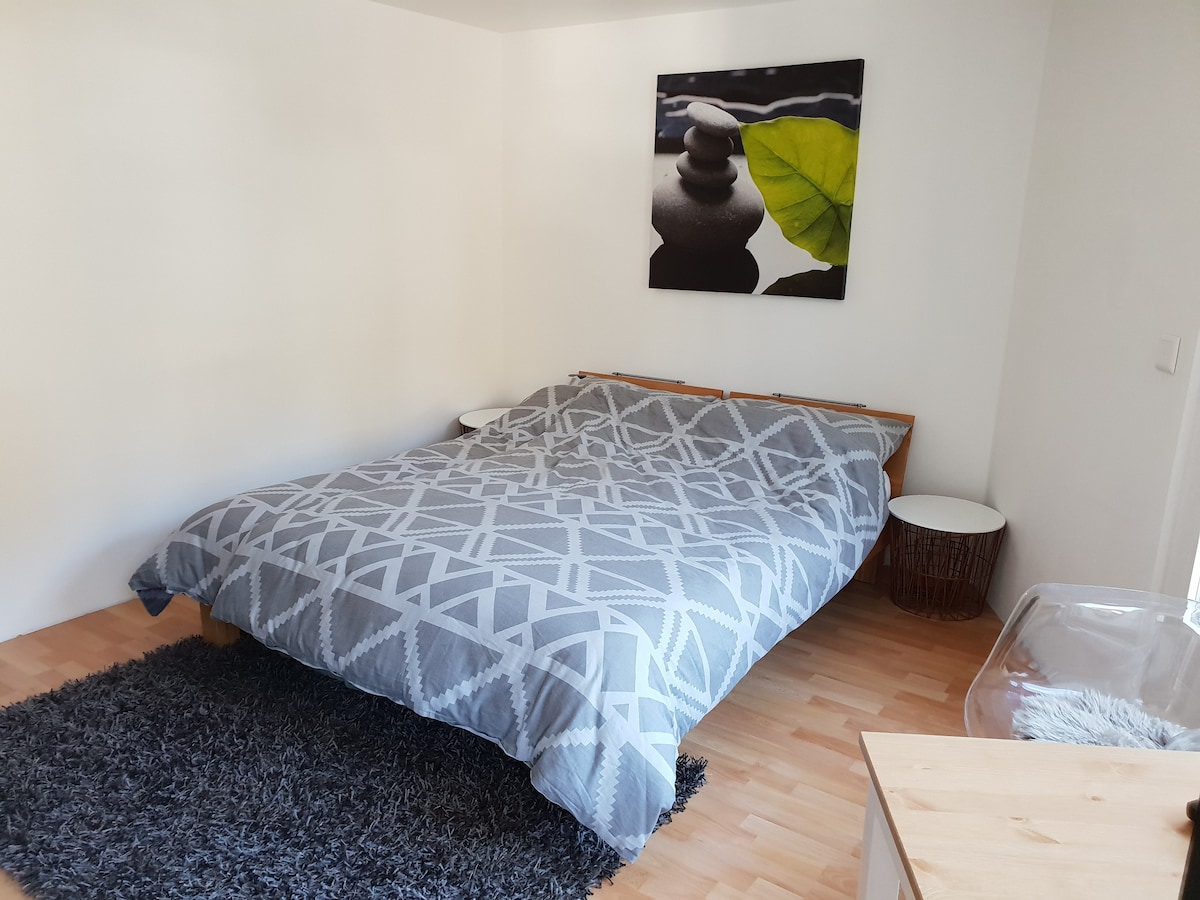 Situé à 5 min de Sion en voiture, un studio meublé avec un lit-canapé 160/200, cuisine, salle de bain et chauffage au sol, une petite terrasse vous permet de bien profiter du soleil et barbecue, une vue au sud sans vis-a vis, un parking privé est juste devant la maison, Le Wi-Fi mobile est fournit pendant des séjours, une station d'essence et un magasin DENNER en deux pas, la ligne de 351 /353 vous amène jusqu'à la gare de sion, passez un moment serein et calme, soyez les bienvenus !