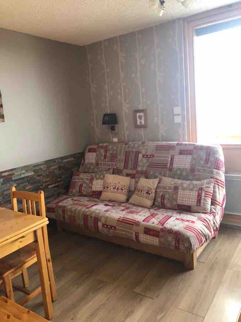 Appt de 27 m² situé plein sud et sur les pistes à 1800 m d'altitude avec balcon. Vue magnifique sur les montagnes. Il est central (commerces, restaurants + guichet forfaits) et au cœur des 3 vallées. Très fonctionnel, il est spacieux la journée et offre 2 chambres la nuit (cloison amovible avec d'un côté 2 lits d'1 pers et de l'autre 1 clic clac + 1 pt lit) Draps et serviettes non prévus (possibilité de location) voir photo