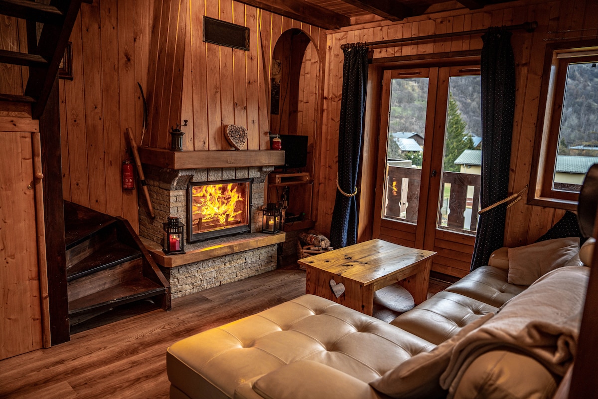 Le chalet est proche de la ville, situé à 1km de la gare, funiculaire. Appart de 125 m2 sur 2 niveaux, 4 chambres, une salle de bains, 2 WC. Il est parfait pour les couples et familles avec enfants. Tout équipé, décoré style chalet montagne, vieux bois, logement neuf. Une place de parking devant le chalet, local à vélos/skis Frais de ménage : mise à disposition et entretien du linge de lit et serviettes de toilette, ménage de fin de séjour. Quartier résidentiel, calme. Vue sur les montagnes .
