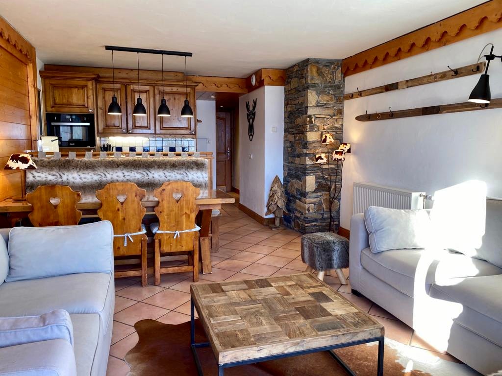 Appartement au RDC en Plein pied Centre du village 57 m2 Proche de toutes commodités: restaurants, bars, boulangerie, bus Hiver: Dimanche au Dimanche (Sauf demande exceptionnelle) Pistes 150m et proche des chemins de randonnée Casier à ski au pied des pistes (Avec sèche-chaussures) Coeur des 3 Vallées -Entrée ouverte sur la pièce à vivre -Salon TV -Table à manger et sa cuisine équipée -2 chambres (lit double 160*200, Deux Lits Twin 80*200) -Salle de bain (douche) -WC séparé -Salon de jardin