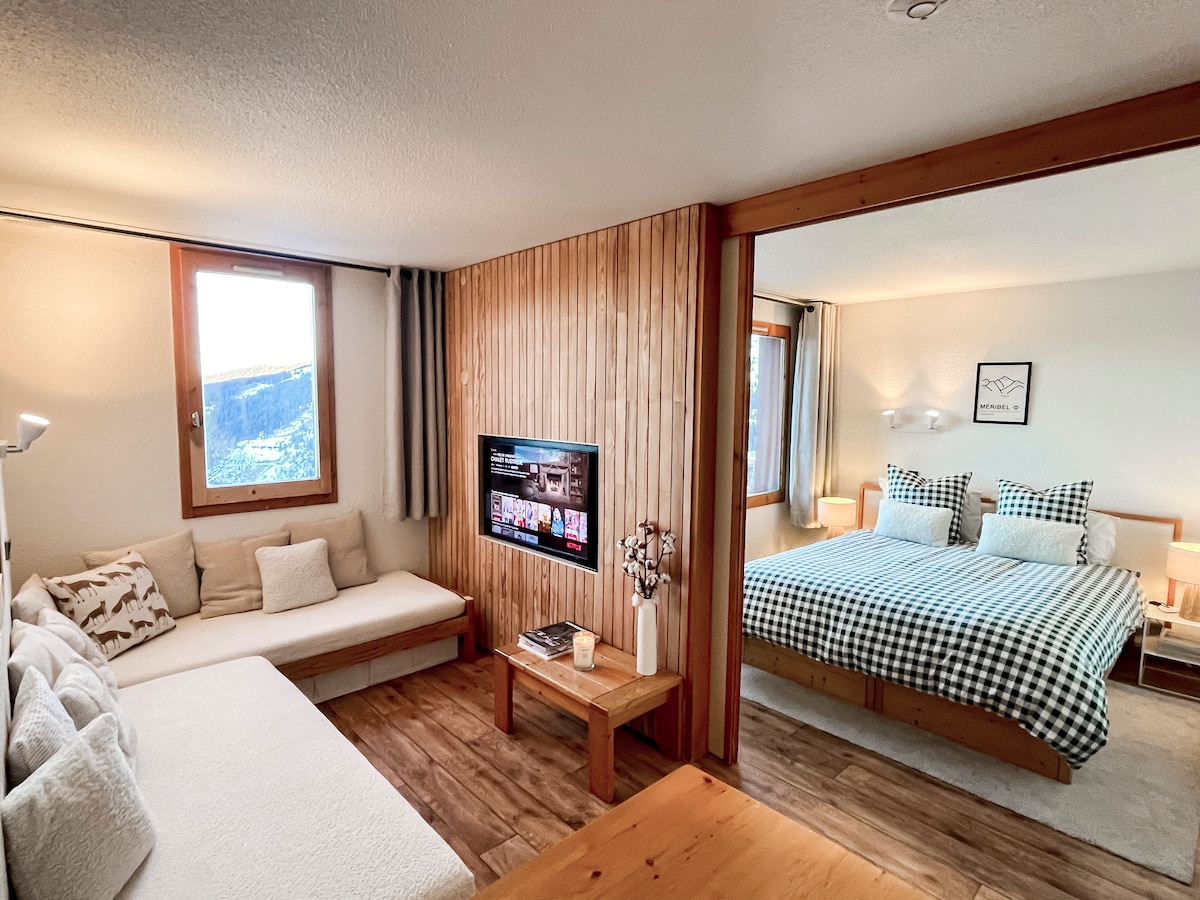 Appartement classé 3*** et "Label Méribel". Excellent emplacement et très belle exposition à 50m des pistes (Plateau Rond-Point). Proche des commerces, cet appartement T2 entièrement rénové comprend une cuisine équipée (lave-vaisselle, micro-ondes grill, Nespresso, plaques induction…), coin repas, canapé lit dans le salon. Il dispose d’une chambre avec lit double et salle de douche (lave linge). La décoration raffinée vous séduira. Large balcon accessible depuis salon et chambre. Parking.