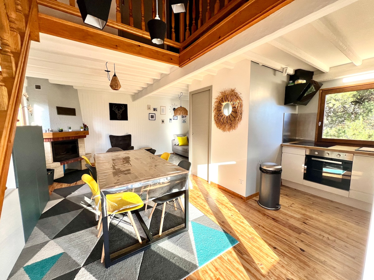 Détendez-vous dans ce chalet calme et élégant entièrement rénové,à proximité des navettes (150m) et sentiers de montagne (30m) .Idéal pour 6 ,il est composé de 3 ch et d un coin nuit . RDC: 1 lit en 160 + sdb + wc 1 lit en 160 +sdb A L ETAGE sous les toits 1 lit en 140 +2 lits en 80*190 + sdb. Le salon est equipé d'1 cheminée bio-éthanol(fournit sur demande) vue sur la foret et les montagnes . 1 havre de paix à l'orée des bois.