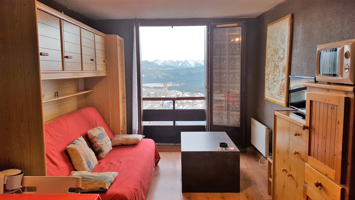 Studio cabine au coeur du village des Angles (4 personnes) Studio cabine meublé de 25 m² aux angles à 300 m des pistes (navettes) Idéal aussi l'été pour randonner dans les Pyrénées. Possibilité de loger à 4 (un canapé lit + deux lits superposés dans la cabine), idéal pour les couples avec des enfants. Pour deux couples, les séjours inférieurs à une semaine sont préférables.