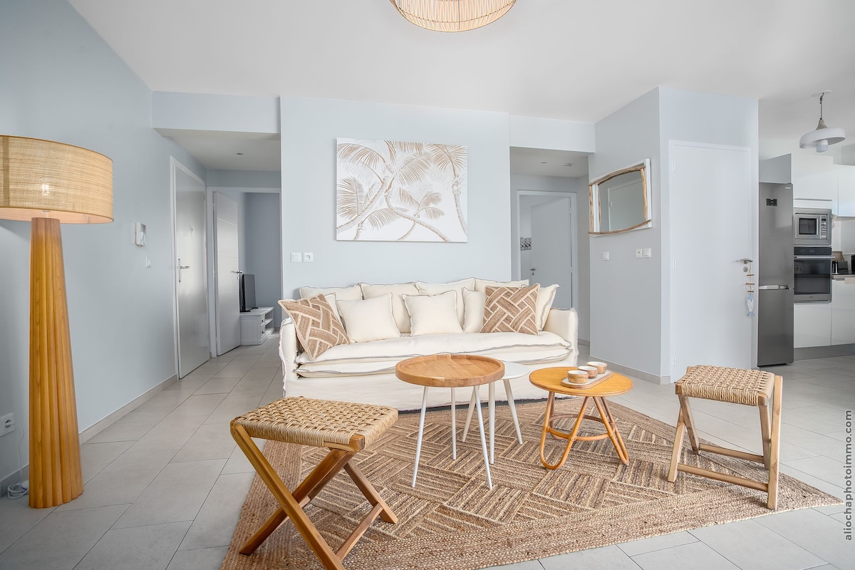 Vivez un séjour inoubliable dans ce T3 orchidée, pouvant accueillir 4 personnes. Il y a 2 chambres: 1 avec lit double et 1 avec 2 lits simples, et une banquette si nécessaire. Cet appartement dispose d'une terrasse panoramique avec vue mer et montagne. Il est entièrement climatisé. Vous pourrez également profiter de la piscine de la résidence et serez à 4 kms du village. Vous bénéficierez également d'une place de parking. Ce logement est entièrement équipé pour passer un formidable séjour.