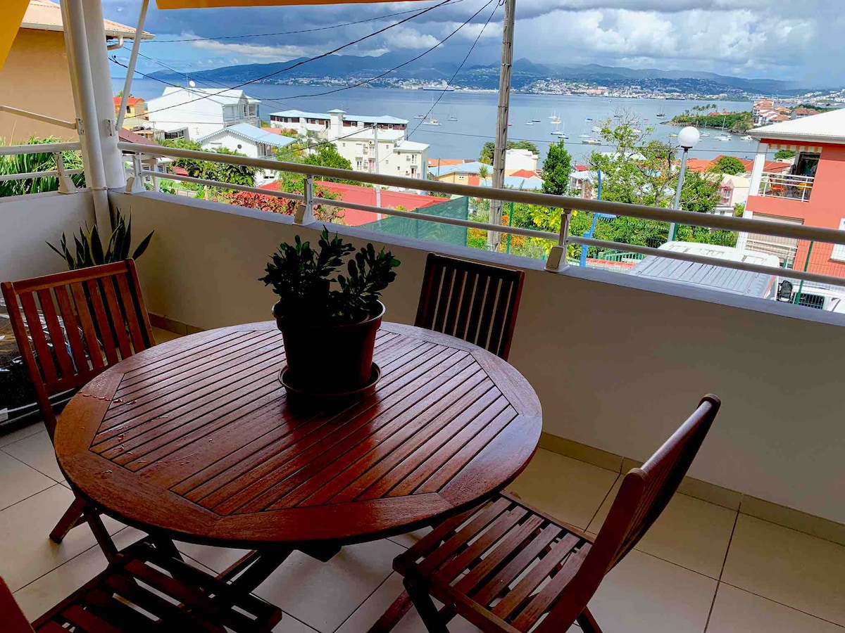 Step into a bright home and enjoy the breathtaking view of the bay of Fort-de-France! Located 5 minutes away from the island's main highway, this apartment will be your ideal base for a working or leisure stay or a combination of both. Designed with remote work in mind, the dedicated desk and high-speed internet will allow you to work efficiently. For a restful sleep, the cozy bedroom with air-conditioning will welcome you night...or day.