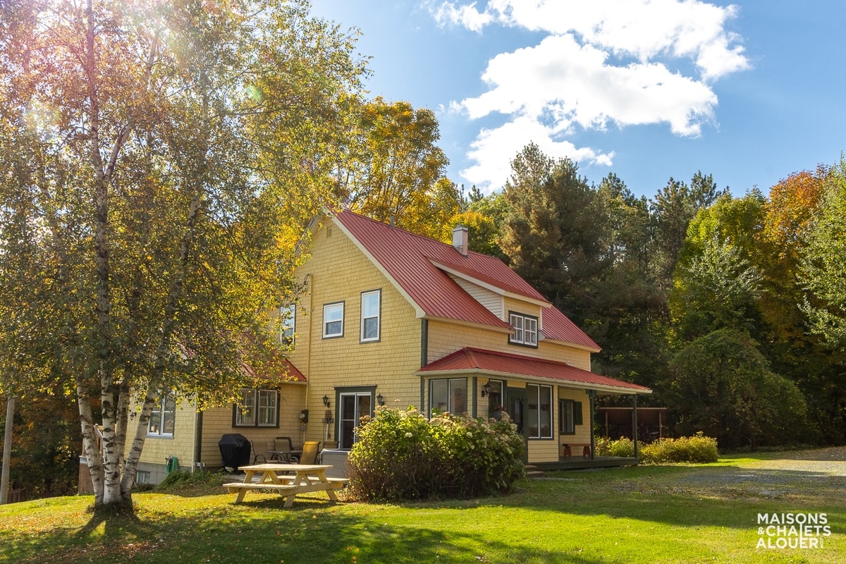 Large chalet for 18 people, ideal for families or groups of friends. On a very large plot of land surrounded by nature, enjoy the tranquility and outdoor activities. - Heated swimming pool and outdoor fire pit (summer). - 4 pairs of snowshoes included, 22km of snowshoe trails and a fireplace to warm up (winter). - Magical decor during the burst of colours (autumn). The kitchen is well equipped to cook and bring everyone together for a good meal. 20 minutes from Magog-Orford & Sherbrooke.