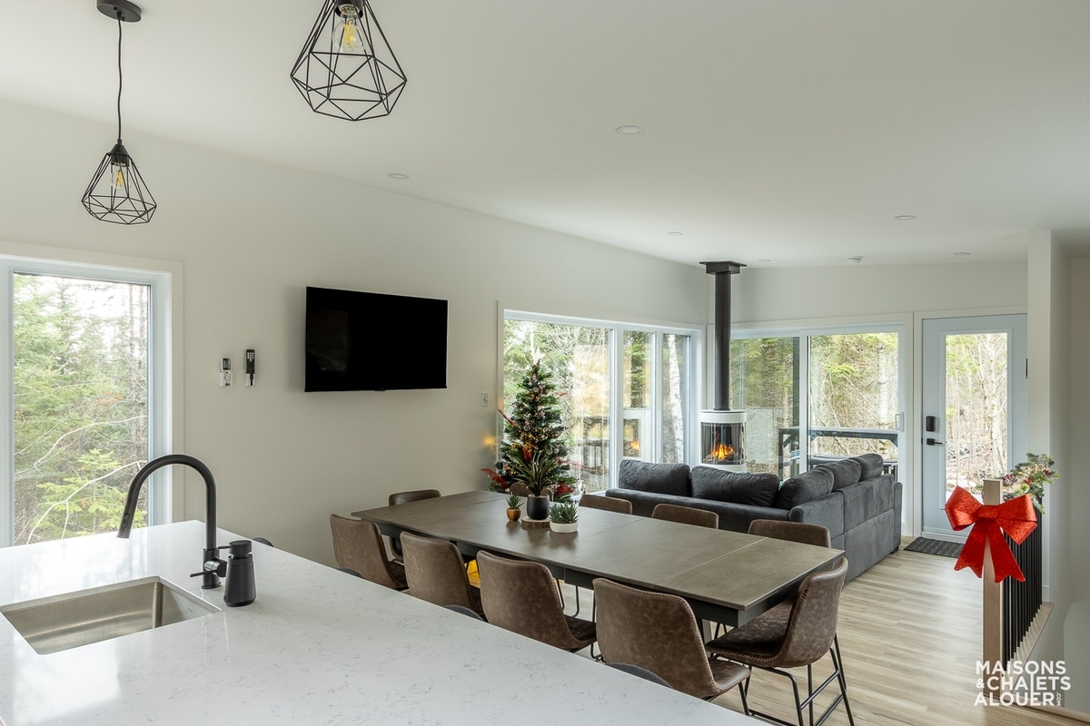 Bienvenue dans ce magnifique chalet 4 saisons tout équipé situé sur la montagne Mont-Orignal. Ce chalet peut accueillir confortablement 3 à 4 couples, avec 2 chambres à coucher et une salle de bain complète. La cuisine est entièrement équipée avec de la vaisselle incluse pour votre confort.