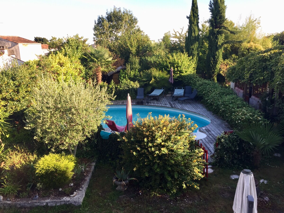 Location saisonnière dans une oasis de verdure en plein centre ville (quartier non inondable). Entree indépendante. Charme d’un ancien relais de poste. Possibilité de garer une voiture dans la cour fermée. Deux chambres dont une en mezzanine, plus deux lits parapluie et 1 canapé lit pour une personne . Accès libre à la piscine . Jardin avec barbecue. Plages à 30 mn. Draps et serviettes de toilette et de bain fournis. Animaux interdits.