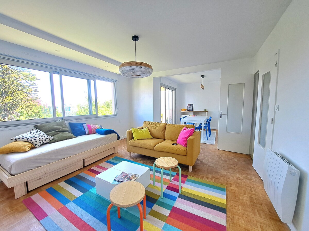 Nous louons notre agréable appartement vue mer, le panorama à 180 degrés sur la rade est superbe (de Plougastel à l'entrée de goulet). Idéalement situé au centre ville, à 2 min à pied de la gare, à 5 min du tram et de toutes commodités. Vous profiterez d'un bel espace de vie et d'un petit balcon filant exposé sud, idéal pour 2-3 voyageurs.