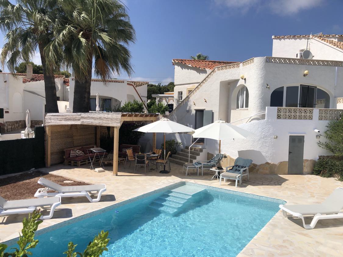 "Villa Sunset Moraira" - Enjoy dreamy days in a modernized Spanish-style villa for up to 8 guests. Highlights: - private pool (with heating) - large outdoor area with south-facing views - Outdoor kitchen with barbecue - air conditioning, fans and heating in all rooms - high-quality furnishings - 3 bedrooms with box-spring beds - 2 modern bathrooms with shower and bathtub - fully equipped kitchen - fast Wi-Fi - Smart TV - quiet location, close to the beach ☆ "Clio's villa is an absolute Jewel!"