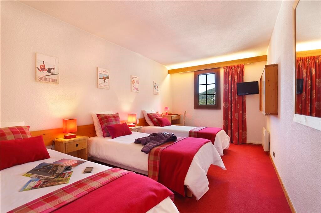 <p> The Hotel du Bourg sits at the centre of Valmorel, on the village shopping street. With beautiful rock arches and wooden balconies, the hotel integrates perfectly with the local Savoie architecture, which you can see both throughout Valmorel and replicated in the eye-catching fresco that adorns the front of the hotel. </p> <p> Our 3-star family-friendly ski hotel is the starting point to the ski slopes: they are just 5 minutes walk away. Ski rental shops, the children’s club, shopping boutiques, a cinema and restaurants are all within 5-minutes walk of the hotel. </p> <p> The Grand Domaine mountain is accessible to all. Beginner or advanced, you’ll be able to enjoy your favourite winter sport at your own pace. Valmorel will charm you with its rustic atmosphere, so that children, parents and friends will spend an unforgettable holiday, at the heart of the Tarentaise Valley. </p> <p> A 3-star hotel at the centre of the village <br /> Ski in ski out from the slopes of the Grand Domaine ski area <br /> 49 rooms <br /> Free Wi-Fi in public areas and all rooms except standard rooms <br /> Sunny terrace overlooking the mountains <br /> Parking in front of the hotel <br /> Free in summer and free for 3 hours in winter <br /> English pub <br /> Sauna, free for hotel guests <br /> Ski room in the hotel </p> The Hotel du Bourg offers comfortable family rooms, recently redecorated, that will give you a taste of the revisited Savoie mountain-style decoration. The rooms offer a view onto the surrounding mountains and Valmorel’s traditional slate-tiled roofs. These rooms can accommodate families of 2 adults and 1 children, or up to 3 adults. They are also nice for couples who want to enjoy a room that is more spacious than our confort rooms. The room size is 23 m2/269 square feet for triple rooms One double king size bed + 1 single bed, or 3 single beds A fully equipped bathroom with bathtub and hairdryers LCD TV Telephone View of the mountains or the village Private terrace (In some of the rooms)