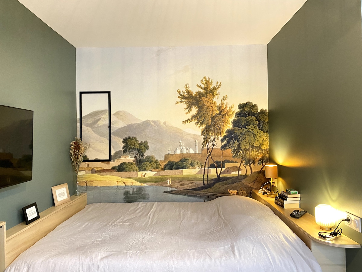 L'appartement est à 3 minutes à pieds de la gare et à 10 minutes du centre historique. Un balcon orienté ouest pouvant accueillir deux ou trois personnes donne sur la rue. La chambre au calme donne sur une cour. Il n'y a pas de vis à vis. Nombreux commerces, restaurants, cafés et lieux culturels à proximité. La décoration est contemporaine avec des objets plus anciens généralement chinés. Hormis la chambre et les sanitaires fermés, cuisine, salon et salle à manger forment un même espace.