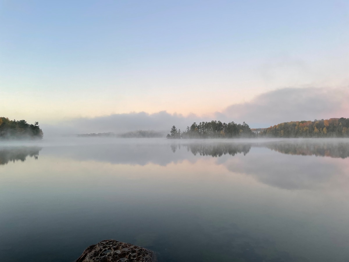 Granite Shore Cottage from Lakeside Getaways’ Village Collection, sits by the shoreline of Lac St. Pierre on a private wooded peninsula. Sleeping up to four guests, it can be rented alone for a quiet escape or with neighbouring cottages for a group stay. Wake to sunrise from your bedroom, then relax on the private deck or covered porch. A short stroll leads to the shared dock, swim platform, and watercraft. Nearby, you’ll find hiking, golf, skiing, and charming villages to explore.