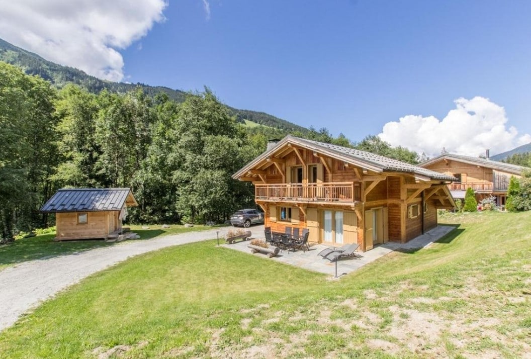 The Mountain House is a large, luxurious chalet set in a peaceful sunny location with wonderful views of the Mont Blanc massif. The chalet is bright & spacious and perfect for summer holidays. It has a large sunny garden, a 12-seater table on the terrace, a picnic table in the garden & a Weber gas BBQ. The chalet has 6 bedrooms & sleeps 15 people. It’s 2km to a parc de loisir with activities including a swimming lake & tennis courts; 100m to a lovely restaurant; & 15 min walk to the village