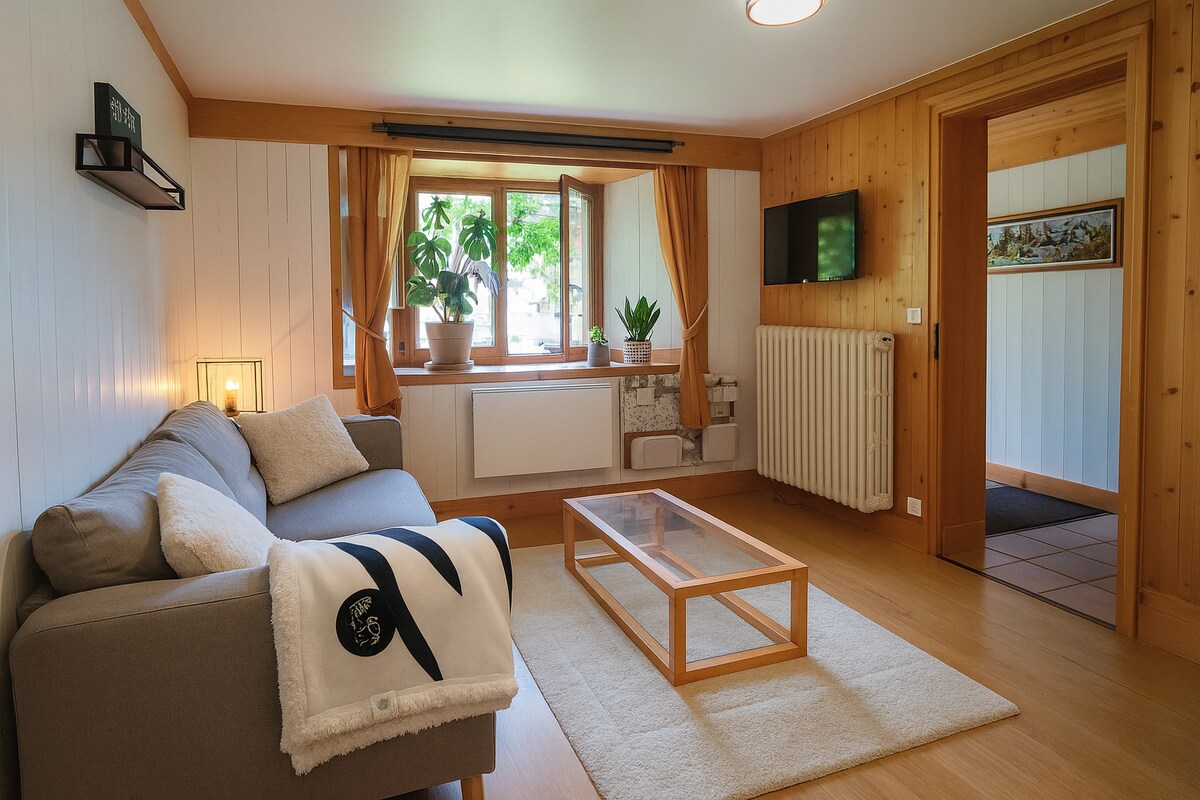Our apartment was recently renovated and has a fully equipped kitchen (dishwasher, oven, microwave). This is a nicely designed 26m2 flat. Forget about small claustrophobic studios, without space to cook or to organize your clothes and travel items. Everything here was thought to provide you excellent comfort for a few days or even weeks. 3min from ski lift and 10min from city center (shops, groceries, restaurants). Chamonix is 33km away by car and Megève is 21km away.
