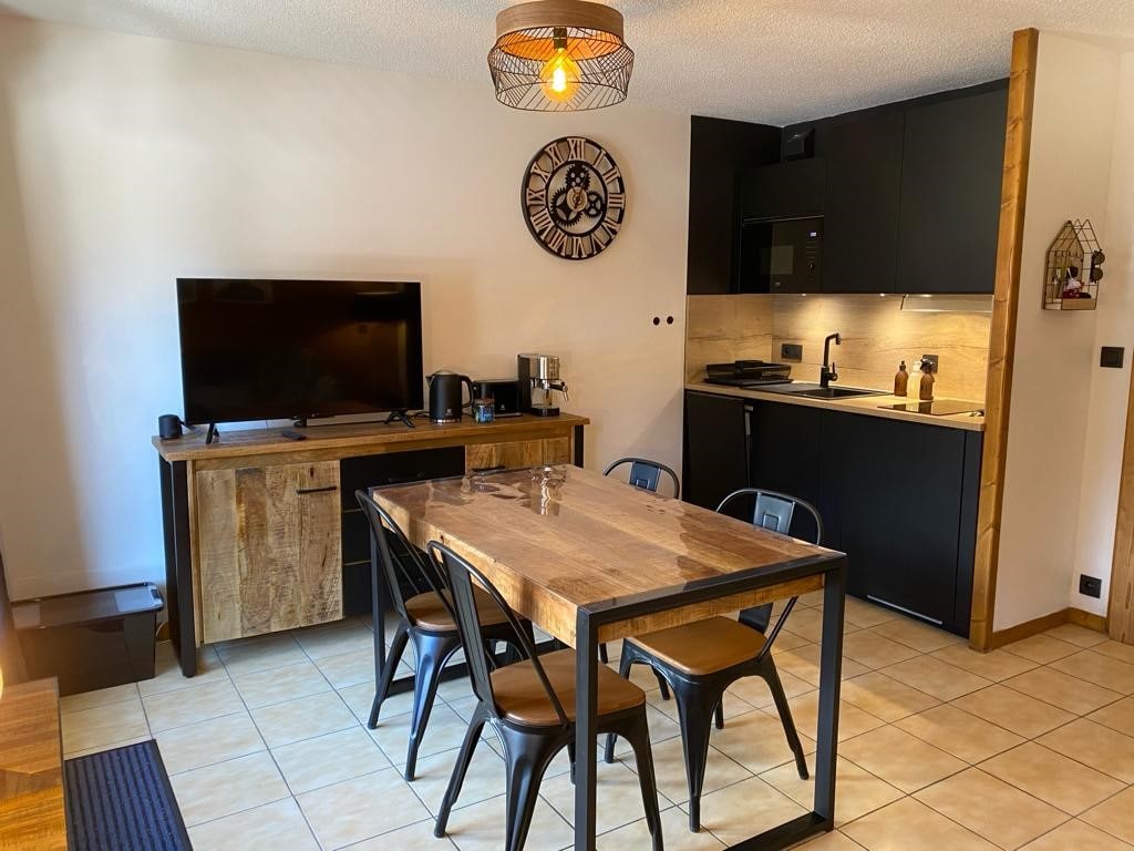 Nous vous accueillons dans notre chaleureux Appartement, vue Montagne, baptisé The Wolf, d'environ 40m2 refait à neuf en 2019. Comprenant même "un pas dans le vide" au 1er étage comme celui de l'aiguille du midi ! A 100 Mètres des pistes de ski et 10min en voiture de Chamonix. Vous vous sentirez comme chez vous ! We are enjoy to welcome you in our cozy appartment name's The Wolf, around 40m and renoved in 2019, Mountain View. Just next to the slopes 100m and the city Chamonix 10min drive!